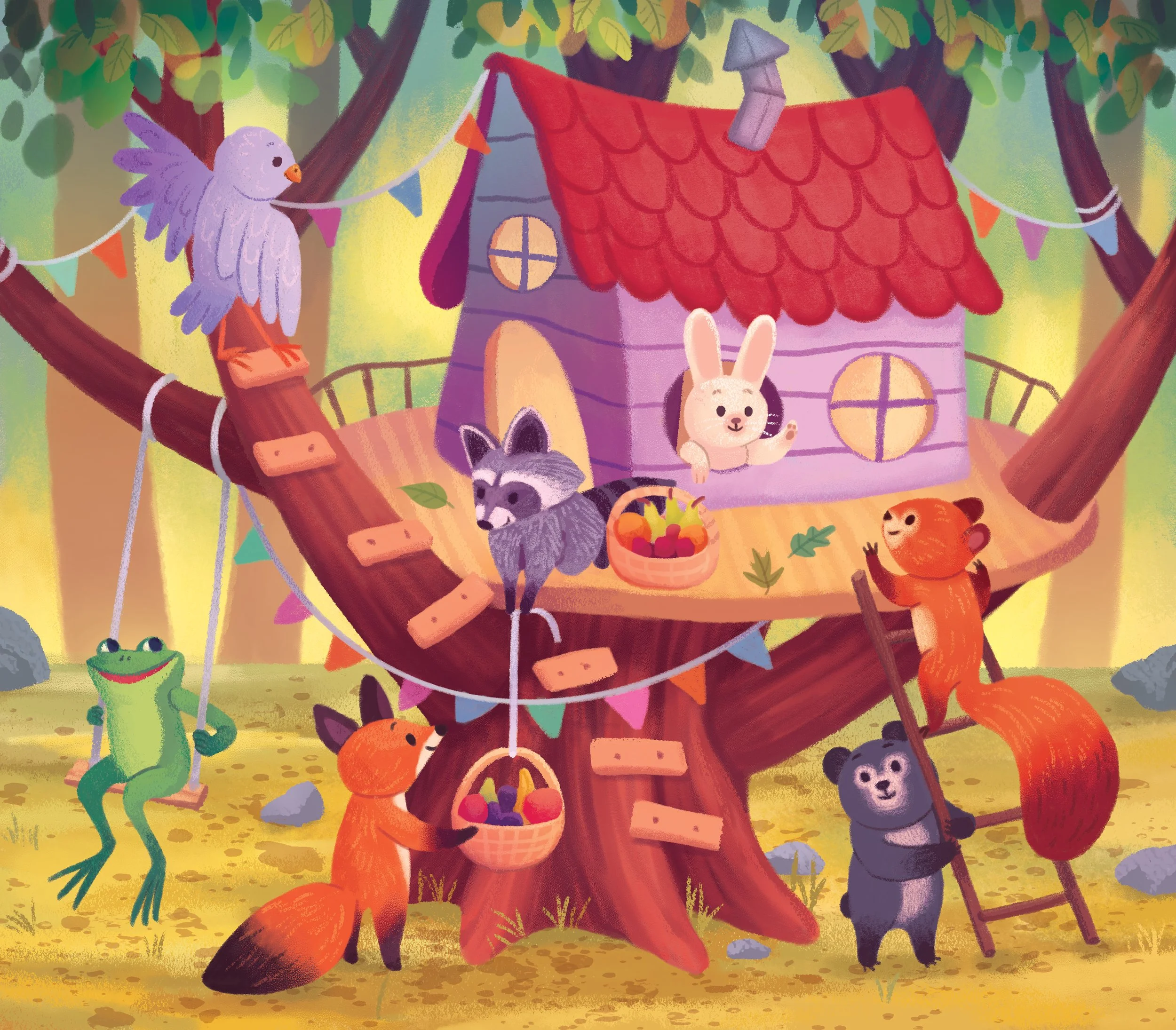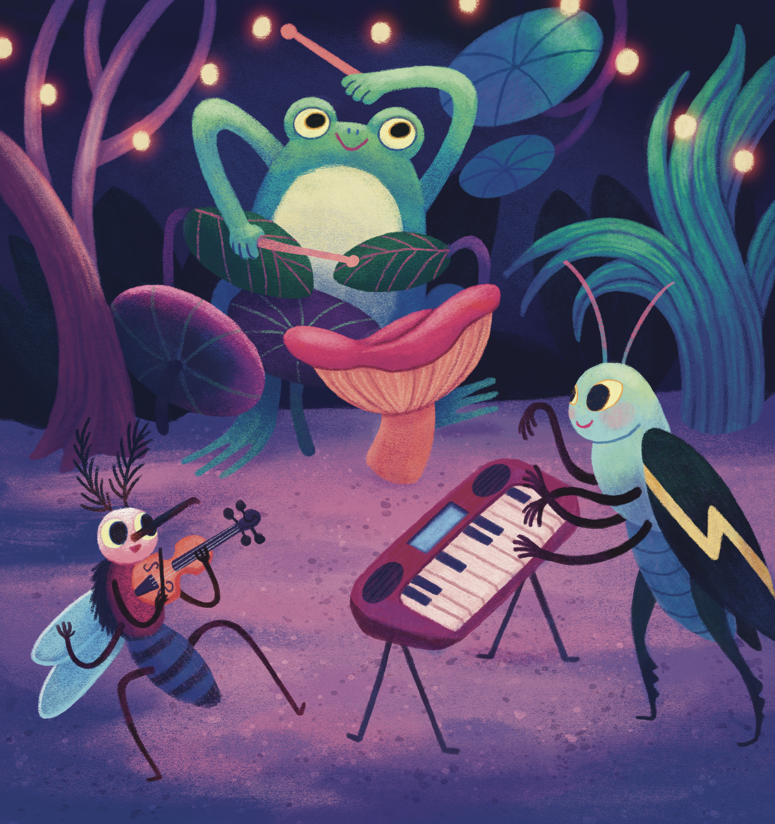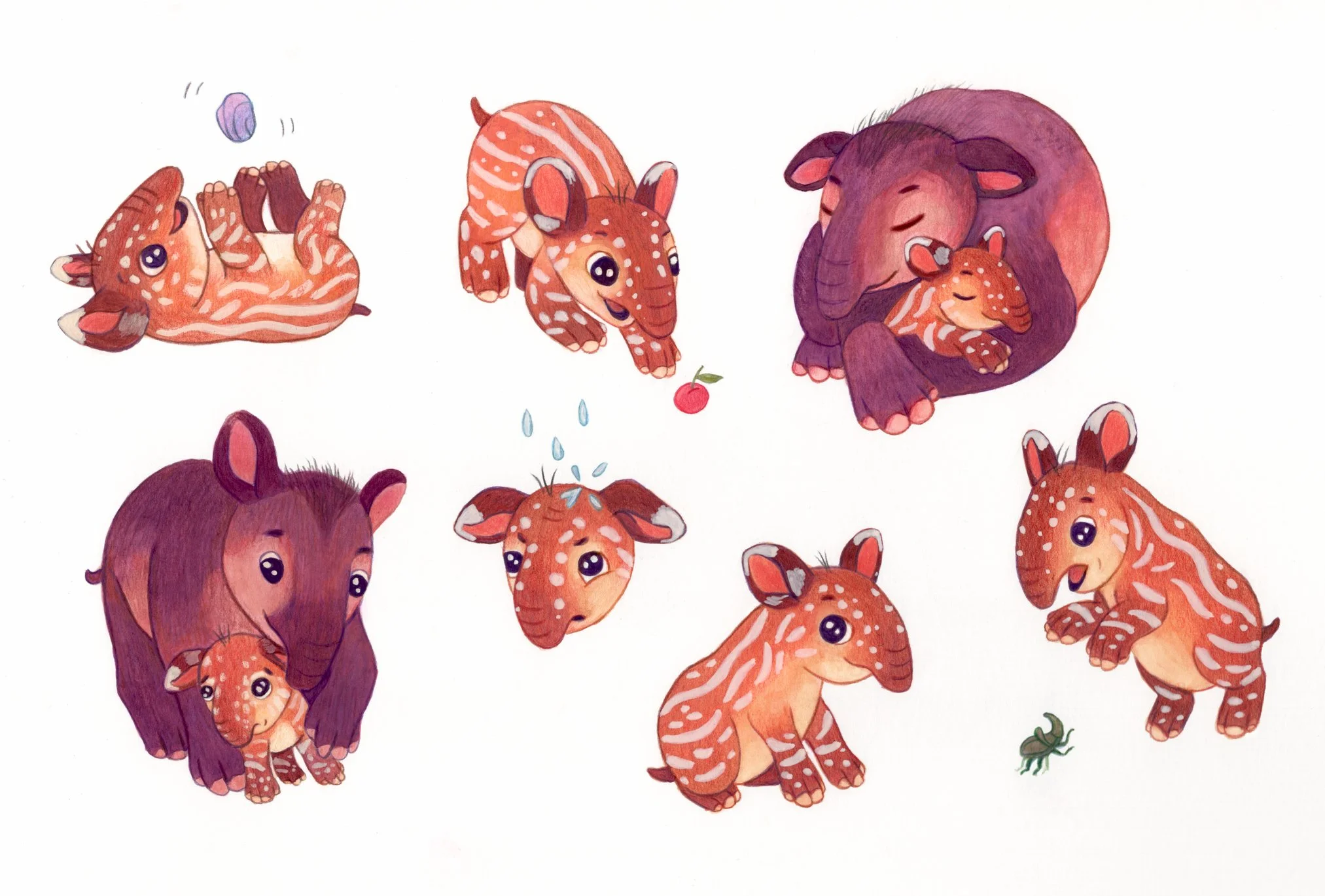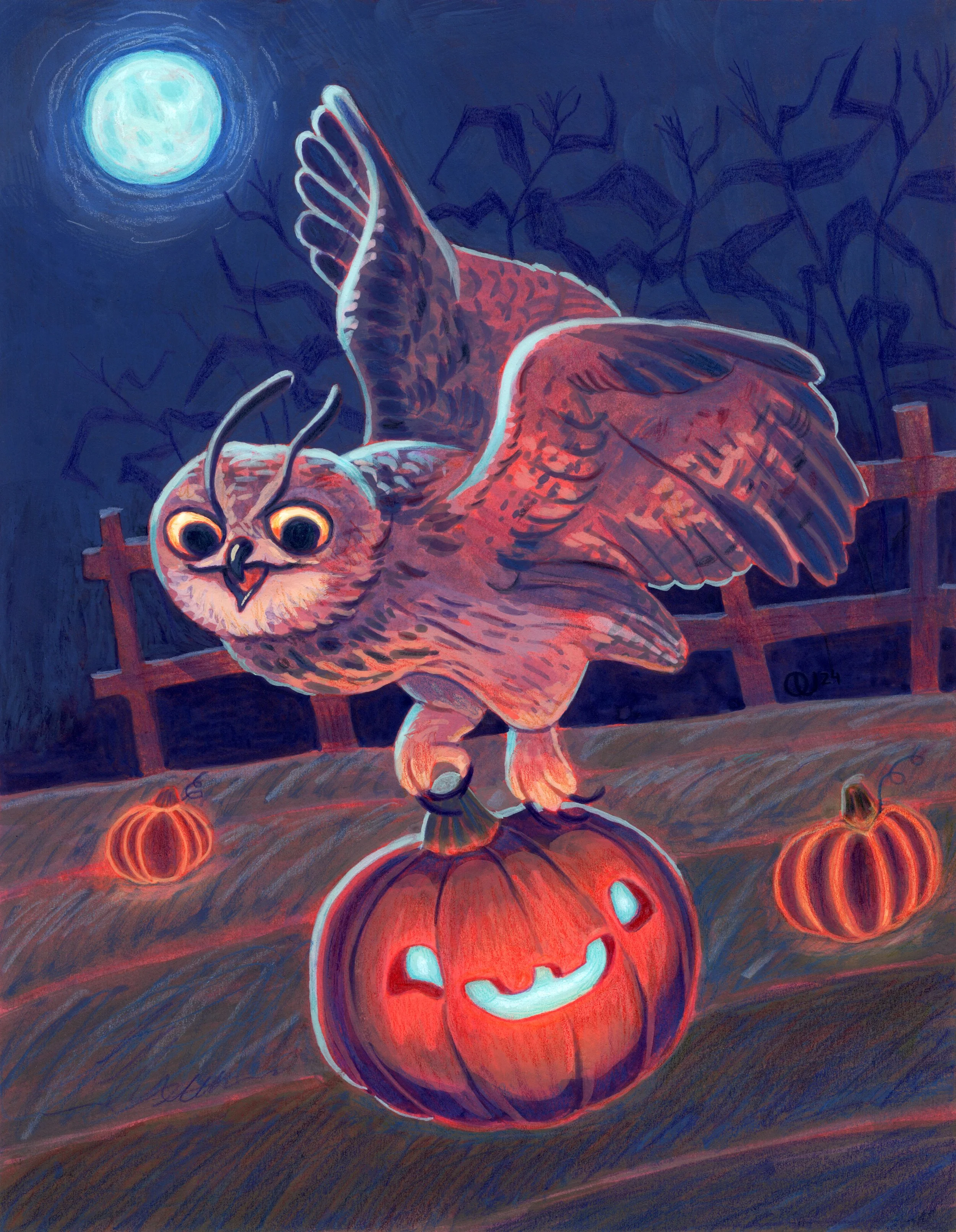 Moonlit Mischief - gouache and colored pencils on watercolor paper 2024