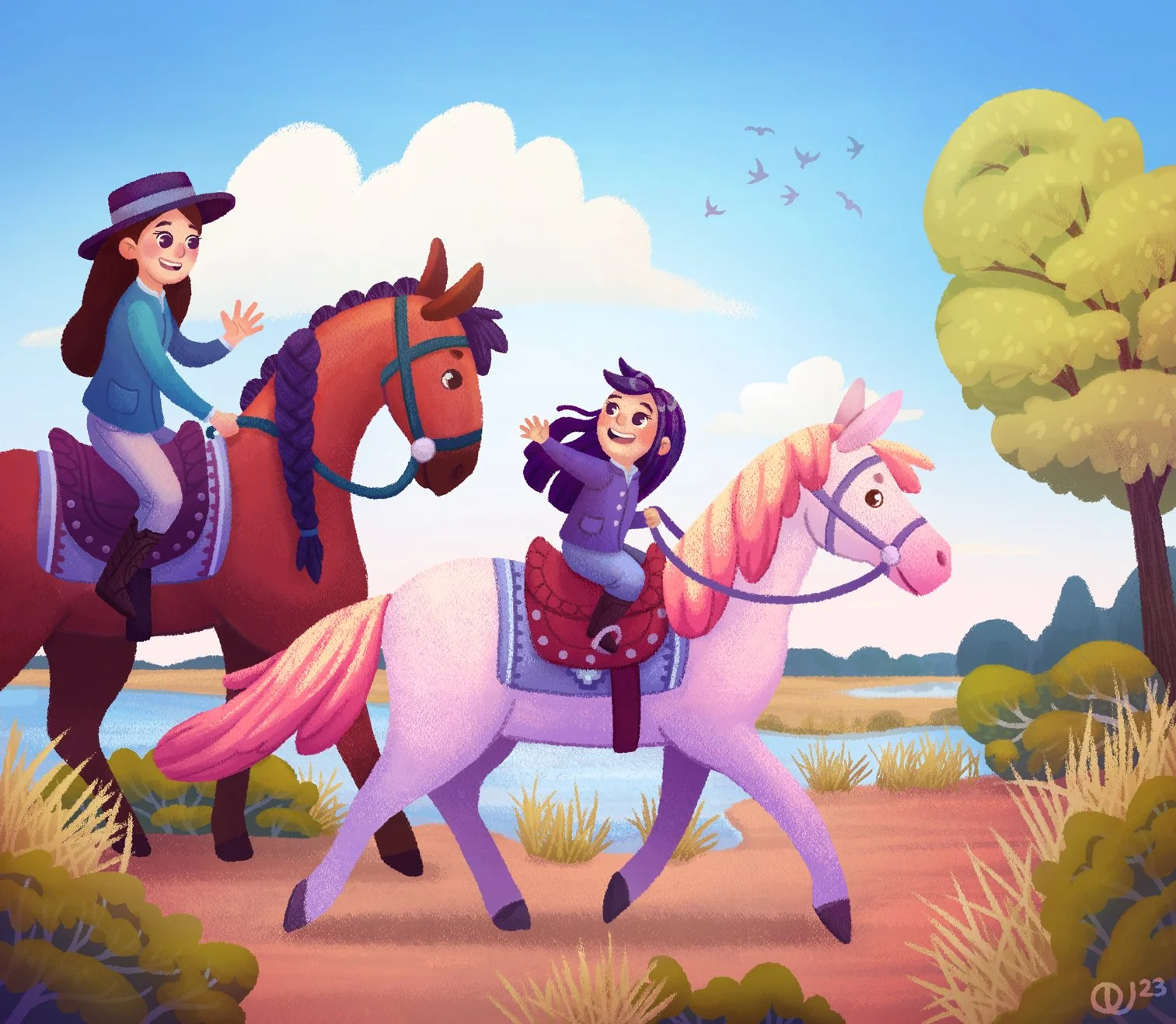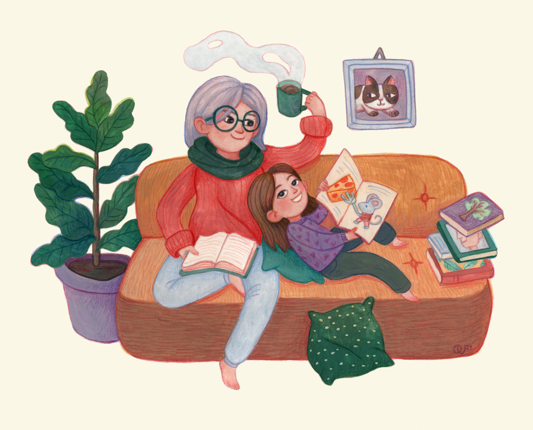 Reading Together - Acrylic Gouache and colored pencils on watercolor paper - 2024